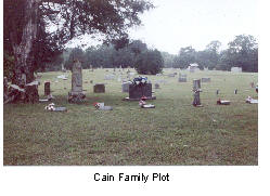 the farm because it possibly meant survival in the agrarian economy of that era. Before we go on, the list of Cain children published in Issue 1 requires correction. Here it is ordered by birth (to the best of our knowledge): Fred Lee Cain, 31 Jul 1887 Minnie Belle Cain, 1888 Willie Monroe Cain, 20 Apr 1890 Lula Etta Cain, 30 Jun 1891 George Kimball Cain, 1893 James Author Cain 1894 Anne Cain, 1895 Rosie May Rebecca, 22 Sep 1900 Ruth Myrtle Cain, 8 Mar 1903 Hardie Allen Cain, 1905 Ada Ester Cain, 10 Aug 1907 Jessie Gertrude Cain, 2 May 1910 Bessie Adeline Cain, 17 Jul 1914 Two unnamed infant sons, birth and death dates also unknown (believed to have been still-born). The previously published list omitted the still-born because there was confusion about them actually being born or miscarried. And we simply didn’t know or had forgotten about James Author. George Kimball Cain, 1893 to 1911, was approximately 18 years old when he died of swamp fever. Dorland’s Medical Dictionary gives three different types of swamp fever - mud fever, quine infectious anemia and malaria. Jessie speculates that Georgie’s “swamp fever” was malarial. She can remember her sister Rosie May Rebecca (May Ward) saying that Mary Lou Belle came home one day and said, “Oh, Georgie has swamp fever again,” which she surmised because of seeing the bottle of turpentine on the table (the treatment at the time). Jessie also remembers May talking about how much she loved Georgie; evidently he must have paid special attention to her, perhaps because there were two children who died very young before May was born. There is a small headstone for Georgie at Ware’s Chapel Cemetery, placed by Ruth and Ada; the dates are probably estimated. James Author Cain was born 4 Nov 1894 and died 8 Dec 1894, cause of death unknown. There is a unique tombstone for James; it is very old and probably was placed by Mary Lou Belle and Alan at the time of his death.